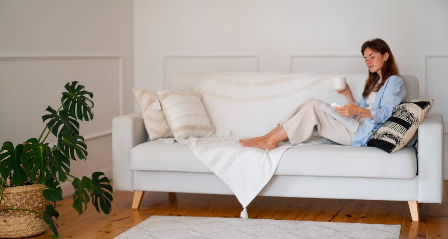 Vous voulez vous asseoir mais vous devez d’abord faire de la place sur le canapé.